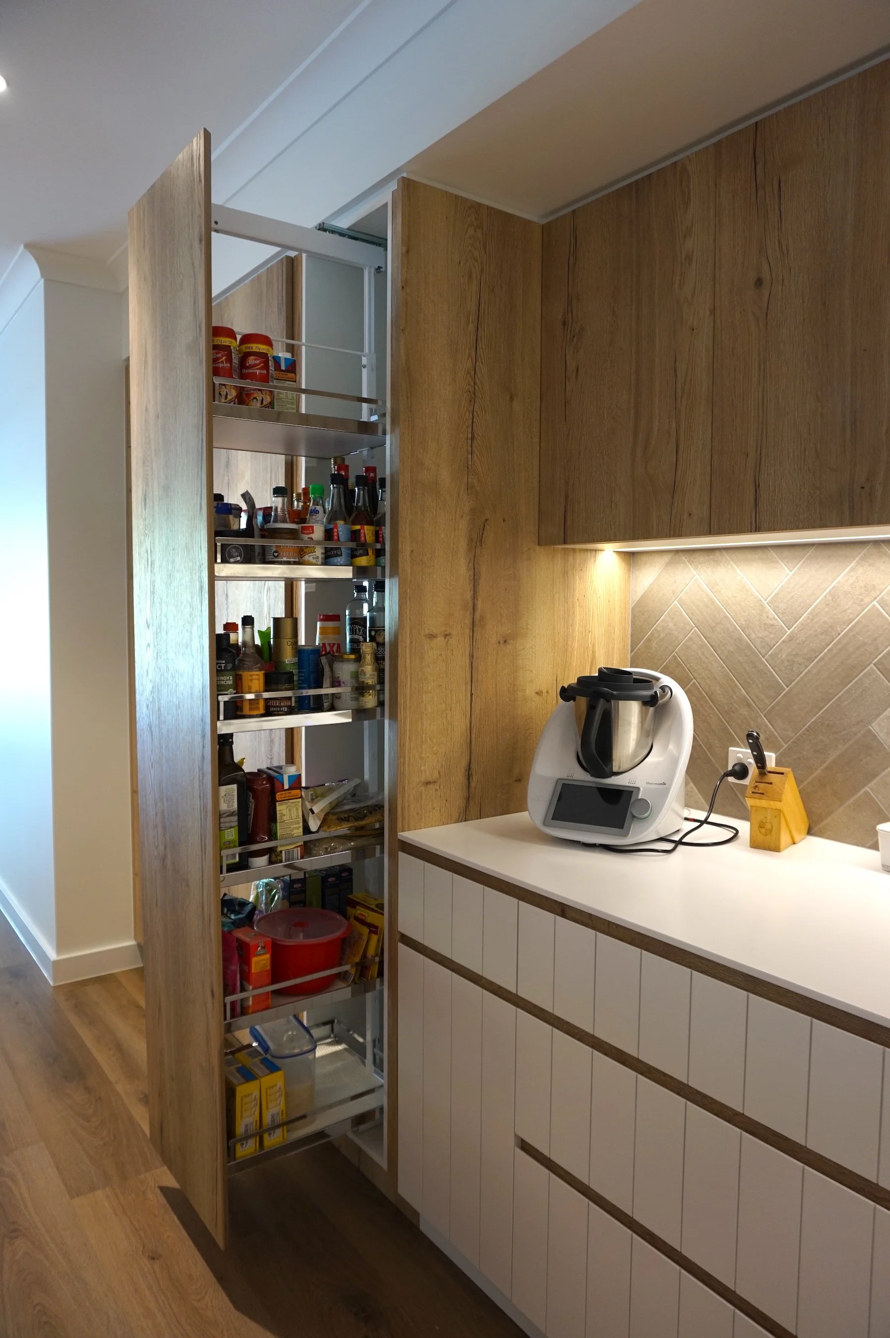 Pantry Pull-Outs Hafele Dispensa, LeMans and Convoy Lavido (and Comfort II in Island bench)